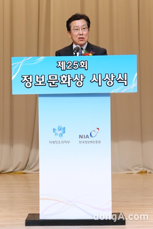 윤종록 미래부 제2차관이 25일 오후 서울 서초구 국립중앙도서관에서 열린 제25회 정보문화상 시상식에서 치사를 하고있다.