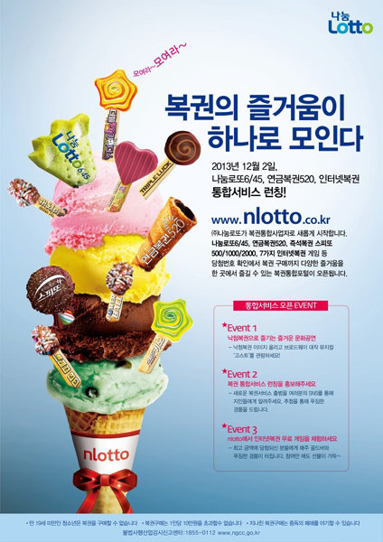 나눔로또는 홈페이지 프리오픈을 기념해 12월29일까지 홈페이지 가입 후 인터넷복권 샘플게임을 체험하면 백화점 상품권, 외식상품권, 영화예매권 등 경품을 주는 이벤트를 벌인다. 당첨자는 매주 수요일에 홈페이지에서 확인 가능하다. 또 복권 통합 서비스 홍보 포스터를 스크랩 해 SNS, 블로그, 카페 등에 공유하면 추첨을 통해 706명에게 국민관광상품권, 백화점 상품권 등 다양한 경품을 주는 이벤트를 12월20일까지 실시한다.