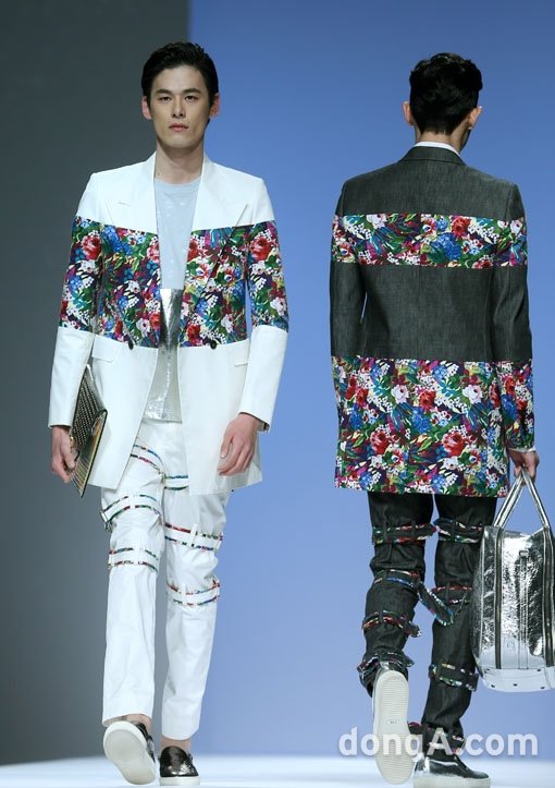 모델 김원중(왼쪽)이 26일 오후 서울 중구 롯데호텔 크리스탈 볼룸홀에서 열린 독일 정통 명품 브랜드 MCM 2014년 봄-여름 패션쇼에서 워킹을 하고 있다.
