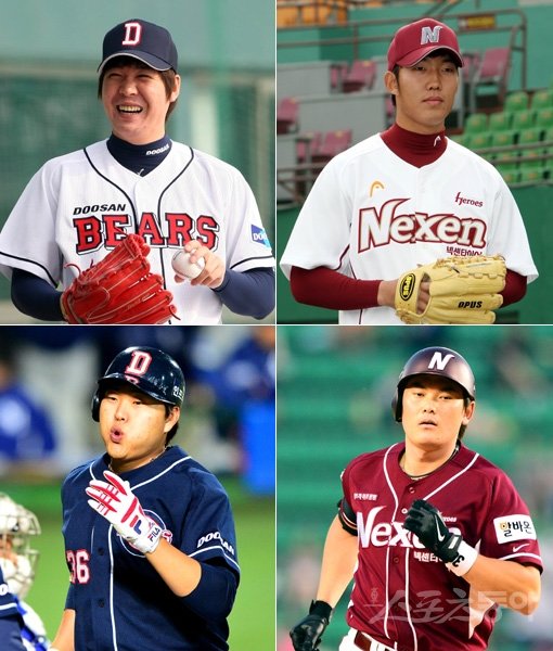 이만하면 넥센과 두산의 ‘신 밀월관계’로 보기에 충분하다. 그동안 양 팀간 트레이드를 통해 유니폼을 갈아입은 이현승, 오재일(이상 넥센→두산), 이성열, 금민철(이상 두산→넥센·왼쪽 위부터 반시계방향으로). 스포츠동아DB