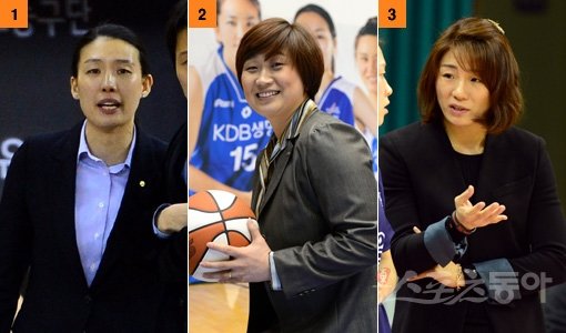 1. 우리은행 전주원 코치(오른쪽)는 위성우 감독과 함께 지난 시즌 신한은행에서 우리은행으로 이적해 팀 체질 개선에 도우미 역할을 톡톡히 했다. 2. KDB생명 유영주 코치는 “향후 10년 안에 우리 여자프로농구도 좋은 여성감독을 배출할 수 있는 길을 터주고 싶다”고 의욕을 보이고 있다. 3. 올 시즌부터 지도자의 길을 걷기 시작한 신한은행 김지윤 코치(오른쪽)는 감독과 선수들 사이의 가교 역할을 자신의 임무로 인식하고 있다. 스포츠동아DB
