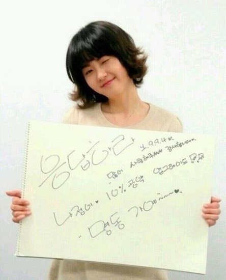 사진 속 고아라는 공약이 적힌 스케치북을 들고 윙크하고 있다. 스케치북에는 “‘응답하라’ 많이 사랑해주셔서 감사합니다. 시청률 10% 공약. 명동 가예”라는 문구가 담겨 있다.