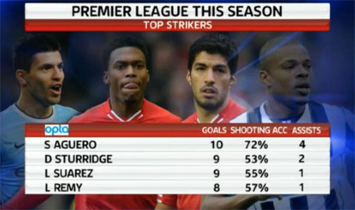 그의 활약은 득점에만 국한되지 않는다. 그는 올해 슈팅 정확도 역시 리그 정상급인 72%를 기록 중이다. 득점 2위 다니엘 스터리지(53%)와 루이스 수아레스(55%)에 비해 월등히 높은 수치다.