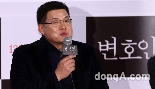 감독 양우석이 29일 오후 서울 왕십리 CGV에서 열린 영화 변호인 언론배급시사회에 참석해 인사말을 하고 있다. ‘돈 없고. 빽 없고. 가방끈 짧고, 돈 밝히는’ 세무변호사가 시국사건을 맡으면서 점점 인권에 눈을 뜬다는 내용을 담는 ‘변호인’은 내달 19일 개봉된다.