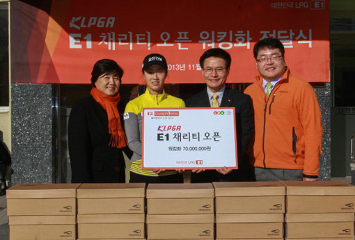 지난 5월 열린 E1 채리티 오픈에서 선수 기부금 6000만원과 주최 측인 E1에서 기부한 6000만원을 더해 1억2000만원의 성금을 조성했고, 이중 7000만원으로 21개 장애인 시설에 운동화와 양말을 지원한다.