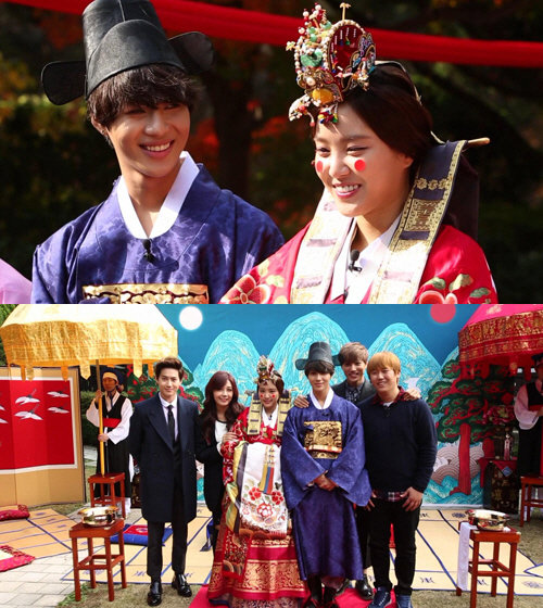 공개된 사진 속 태민과 손나은은 전통혼례 의상을 입은 채 미소를 짓고 있다. 태민은 전통혼례복을 입은 손나은을 보며 “오르지 못할 귀한 집 따님 같다”고 말해 웃음을 선사했다고.
