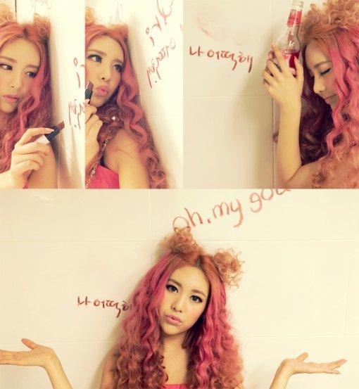 공개된 이미지속에서 큐리는 고양이를 연상케 하는 핑크색 웨이브 헤어에 엉뚱한 듯한 표정으로 몽환적인 분위기를 연출학 있다. 특히 립스틱을 이용해 신곡 ‘나 어떡해’를 표현해 눈길을 끈다.
