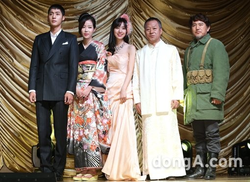 배우 김현중(왼쪽부터), 임수향, 진세연, 최일화, 손병호가 2일 오후 서울 강남구 더 라움에서 열린 KBS 새 수목드라마 ‘감격시대’ 쇼케이스에서 포토타임을 하고있다.