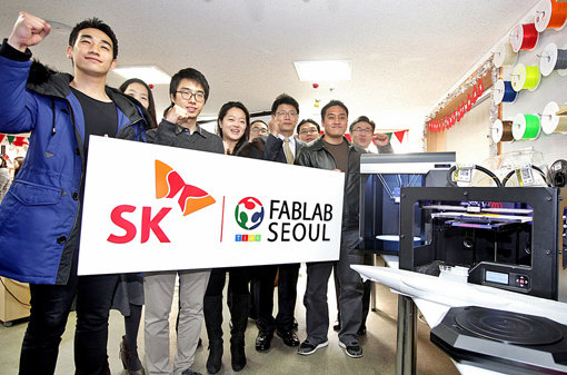 SK텔레콤은 3일 서울 종로구 세운상가 5층에 3D프린터 등 장비를 갖춘 시제품 제작소 ‘SK 팹랩서울’을 열고 초기 창업가를 지원한다고 밝혔다.
