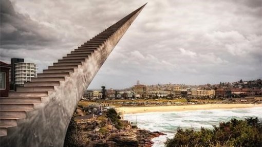이 계단은 뉴질랜드 출신 예술가 데이비드 매크레켄의 설치 미술품 ‘디미니쉬 앤 어센드’이다. 사진 작가 폴 데이비드가 촬영했다. 알루미늄 재질로 만들어진 이 작품은 보는 각도에 따라 하늘 끝까지 무한히 연결된 것처럼 착시 현상을 불러 일으킨다고.