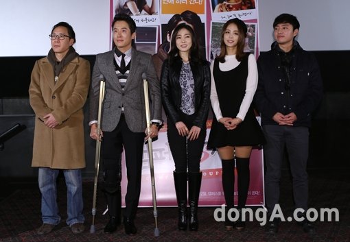 송창용 감독(왼쪽부터), 배우 최필립, 문보령, 서효명, 백재호가 4일 오후 서울 성동구 왕십리 CGV에서 열린 영화 ‘캠퍼스 S 커플’ 언론시사회에서 포토타임을 하고있다.