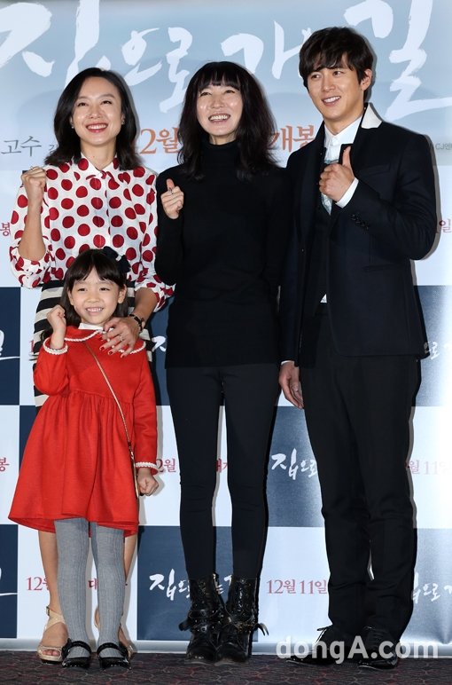 배우 전도연(왼쪽부터), 강지우, 방은진 감독, 고수가 4일 오후 서울 성동구 왕십리 CGV에서 열린 영화 ‘집으로 가는 길’ 언론시사회에서 포토타임을 하고있다.