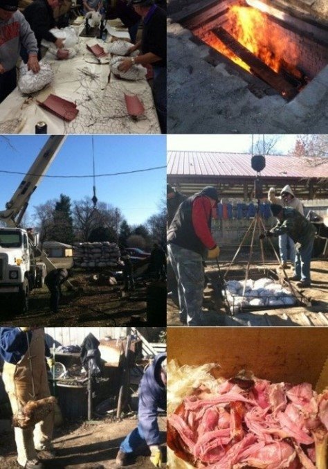 사진 속에는 한마을의 주민들이 잔치를 준비하는 모습이 담겨 있다. 이들은 칠면조와 햄 등을 요리해 이웃들에게 공짜로 나눠주고 있다. 이 과정에서 중장비까지 동원돼 눈길을 끌고 있다.