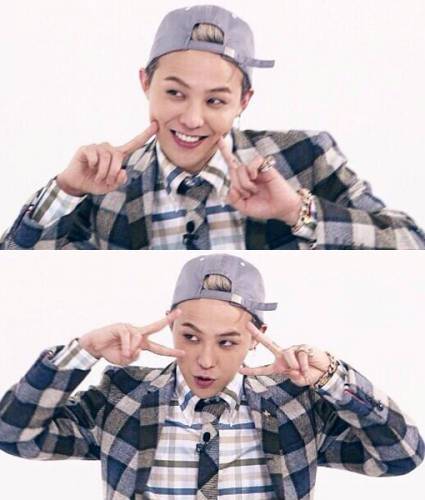 사진에는 지드래곤이 손으로 1과 2를 만들며 애교를 부리고 있다. 훈훈한 외모와 상큼한 미소가 인상적이다.