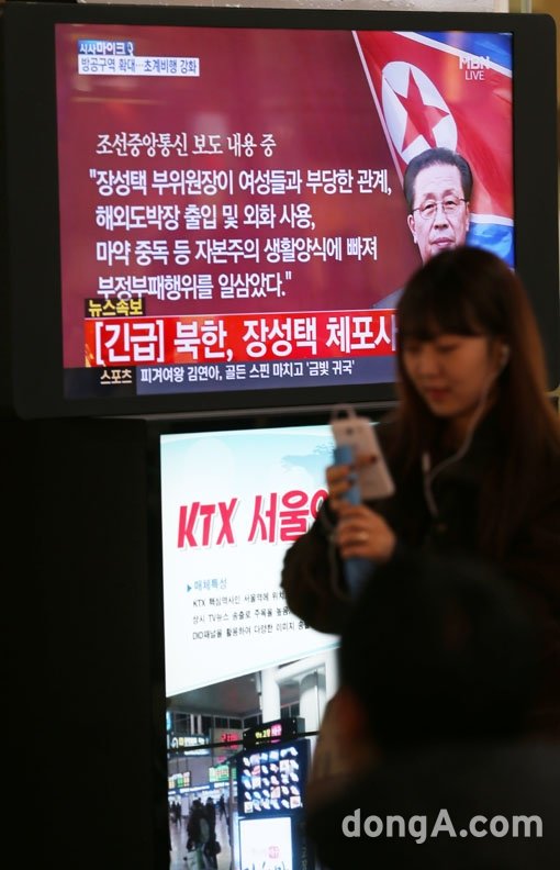 북한 조선중앙TV가 실각한 장성택 북한 국방위원회 부위원장의 체포 영상을 공개됐다. 9일 오후 서울역 대합실에서 시민들이 관련 뉴스를 보고 있다