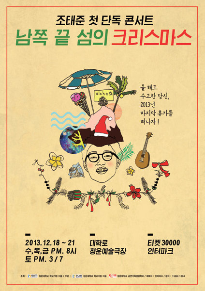 조태준은 ‘올 해 또한 수고한 당신, 2013년 마지막 휴가를 떠나자’라는 부제 아래, 피곤한 일상에 찌든 사람들에게 2013년의 마지막 달, 마치 휴가와도 같은 공연을 준비하고 있다. 특히 시원한 우쿨렐레의 선율로, 한 겨울에 여름휴가를 떠나온 듯 한 느낌을 선사한다는 계획이다. 전석 3만원, 문의 1588-1894.