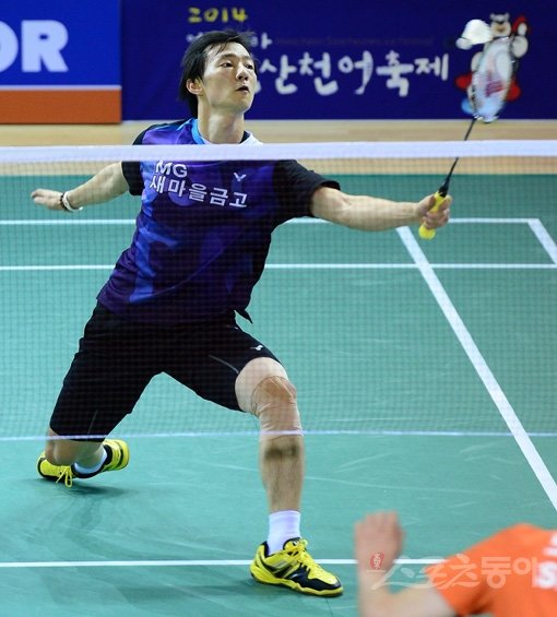 9일 강원도 화천체육관에서 열린 2013 한국실업연맹 회장기 실업배드민턴 대회 남자 단식결승에서 승리한 MG새마을금고 이현일이 상대 공격을 받아내고 있다. 화천|김종원 기자 won@donga.com 트위터@beanjjun