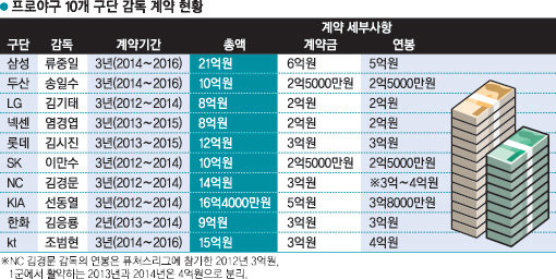 역대 최고 대우로 삼성과 재계약한 류중일(50·사진) 감독은 축하를 건네는 이들에게 환한 웃음과 함께 연신 “감사하다”고 인사했다. 9일 오전 삼성 구단 서울 사무실에서 계약기간 3년에 계약금 6억원, 연봉 5억원 등 총액 21억원에 사인한 뒤 일구상 시상식에 참석한 그는 취재진과 만나 “지난 3년은 1기였다. 앞으로 2기는 덕장에 지장까지 겸비한 감독으로 거듭나겠다”고 밝혔다.