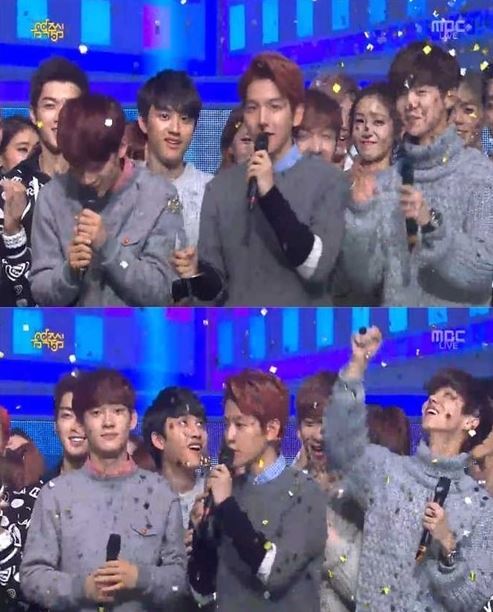 이날 엑소는 함께 1위 후보에 오른 효린 '너 밖에 몰라'와 서인국-지아 듀엣곡 '이별남녀'를 제치고 1위를 차지했다.