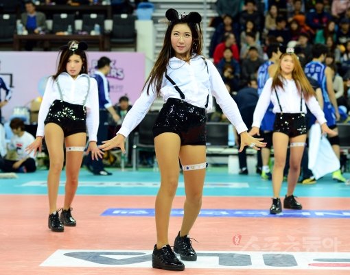 15일 인천 계양체육관에서 ‘2013-2014 NH농협 V리그’ 인천 대한항공과 대전 삼성화재의 남자부 경기가 열렸다. 대한항공 치어리더가 화려한 공연을 선보이고 있다.