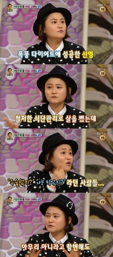 김신영은 16일 방송된 KBS ‘안녕하세요’에 출연해 고민녀의 사연에 다이어트 감량 일화를 털어놨다.