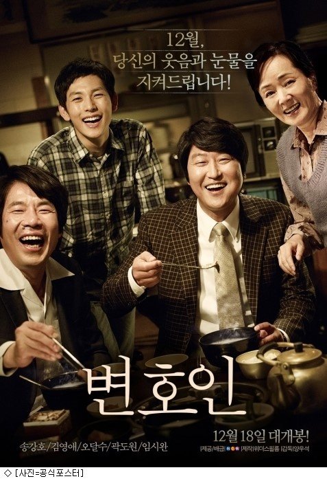 ‘변호인’은 1980년대 초 부산을 배경으로 돈 없고, 배경 없고, 가방끈도 짧은 세무 변호사 송우석(송강호 분)의 이야기를 그렸다. 1981년 제5공화국 정권 초기 부산에서 벌어진 부림사건을 영화로 재구성했으며 주인공 송우석은 고 노무현 전 대통령의 변호사 시절의 이야기를 그렸다.