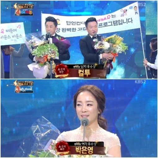 박은영 아나운서와 컬투는 21일 오후 서울 여의도 KBS 신관 공개홀에서 진행된 시상식에서 우수상을 수상했다.