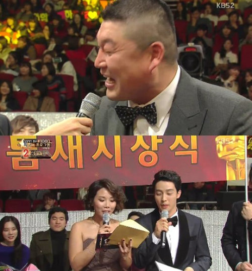 지난 21일 오후 서울 여의도동 KBS 신관공개홀에서 열린 ‘2013 KBS 연예대상’에서 강호동은 ‘틈새시상식’ 코너를 통해 중고신인상을 수상했다.