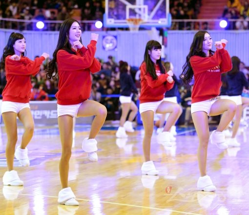 22일 오후 서울 잠실실내체육관에서 열린 ‘2013-2014 KB국민카드 올스타전’ 매직팀과 드림팀의 경기에서 치어리더가 화려한 공연을 선보이고 있다.