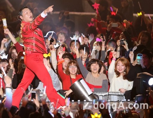 공연 시작 전 공연장 근처는 엄청난 인파로 북새통을 이루었다. 연말을 뜨겁게 보내고 싶은 커플에서부터 아이들을 데려온 가족단위 관객까지 싸이와 함께 달밤에 체조하듯 방방 뛰고 싶은 시민들이 삼삼오오 모여들었다.