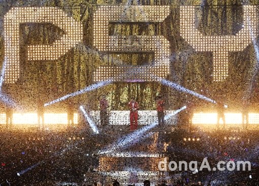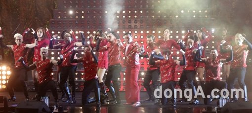 이에 호응이라도 하듯 싸이는 붉은색에 금장이 된 무대 의상을 입고 등장해 초반부터 거침없이 내달렸다. ‘챔피언’을 시작으로 ‘연예인’ ‘롸잇 나우’까지 쉼없이 달렸다. 싸이는 “사람 정말 많이 왔다”며 “무조건 뛰어”라고 외쳤다.