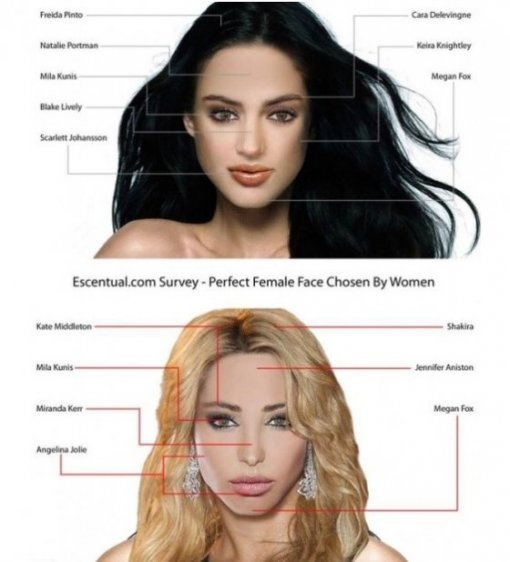 조사 결과, 남성은 금발을, 여성은 흑발을 좋아했다. 또한, 남성은 안젤리나 졸리 같은 입술을 좋아했고, 여성은 스칼렛 요한슨의 입술을 선호한 것으로 드러났다