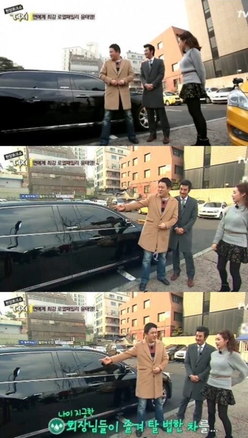 이날 방송에서 윤태영은 블랙 톤의 리무진을 연상케하는 자신의 차량을 타고 등장했다.