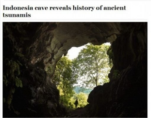 인도네시아 현지 언론은 최근 “25일 싱가포르와 인도네시아 연구진이 수마트라 아체 주 반다아체 인근 해안에서 7천500년 간 발생한 11차례 쓰나미 퇴적물이 그대로 보존된 석회동굴을 발견했다”고 보도했다.