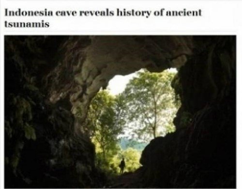 인도네시아 매체는 25일 싱가포르와 인도네시아 연구진이 수마트라 아체주 반다아체 인근 해안에서 7천500년 전 쓰나미 흔적이 남겨진 동굴을 발견했다고 보도했다.