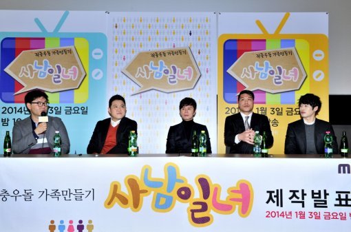MBC 새 예능 프로그램 ‘4남1녀’ 제작발표회가 26일 오후 서울 영등포구 여의도CGV에서 열린 가운데 연출을 맡은 강영선PD와 출연진 김구라, 김민종, 서장훈, 김재원이 자리에 참석했다.