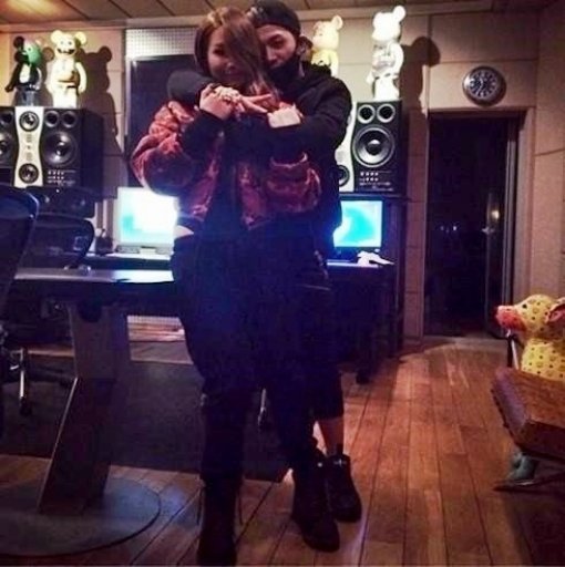 사진에는 태양이 씨엘에게 백허그하고 있는 모습이 담겨 있다. 두 사람은 연인 못지않은 로맨틱한 분위기를 연출하고 있다.