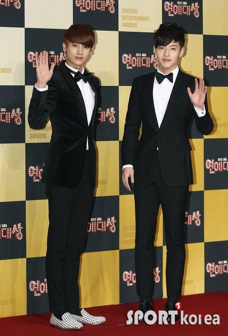 제국의 아이들 박형식과 배우 강하늘이 30일 오후 서울 마포구 상암동 SBS 프리즘센터에서 열린 ‘2013 SBS 연예대상 시상식’에 참석해 포토타임을 갖고 있다.