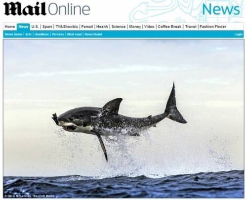 데일리메일의 보도에 따르면 이 거대 백상어는 수면 위로 높이 뛰어올라 물개를 낚아챘다.
