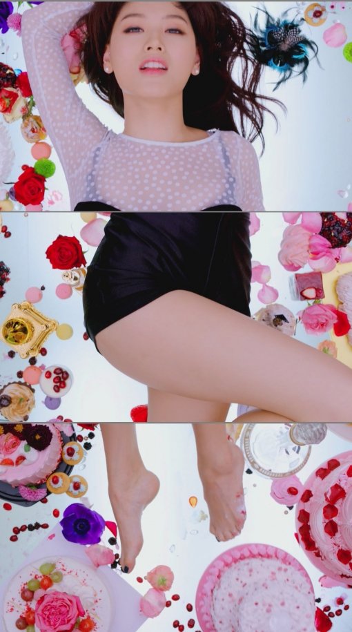 김재경은 케이크와 꽃으로 장식된 화려한 테이블에 누운 유혹적인 모습과 숨소리, 속삭임이 섞인 음성으로 시청각을 동시에 자극하며 야릇한 상상을 불러 일으키고 있다.