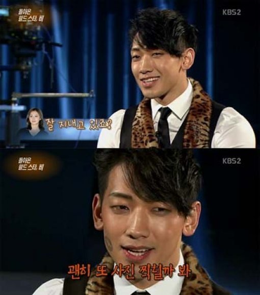 비는 4일 방송된 KBS2 ‘연예가 중계’에서 김태희에 대한 질문에 솔직하게 대답했다.