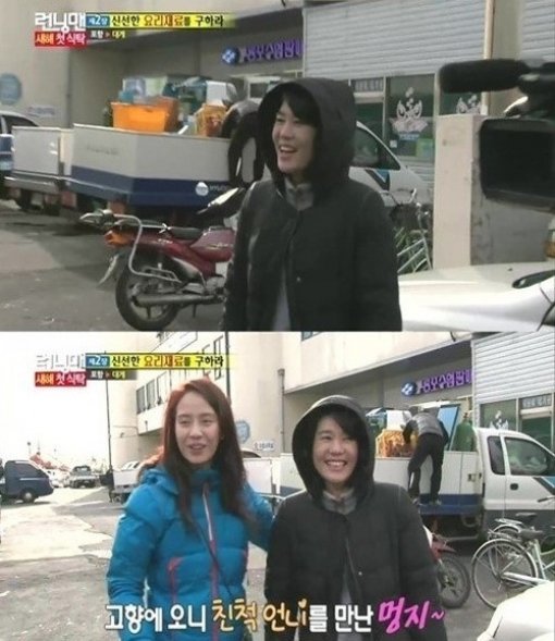 송지효는 5일 방송된 SBS ‘일요일이 좋다-런닝맨’에서 고향 포항을 방문해 사촌 언니와 우연히 만났다.