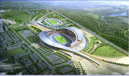 2014인천아시안게임 주경기장 조감도. 인천시의 재정문제로 주경기장을 비롯한 경기장이 계획대로 완공되지 못할지도 모른다는 지적이 나오고 있다. 이에 대해 대회 조직위는 “주경기장은 공정률 85%로 4월까지 개장하는 데 문제가 없다”고 밝혔다. 사진제공|인천아시아경기대회 조직위