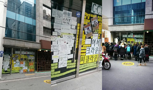 인기 남성그룹 씨클라운(롬, 강준, 시우, 레이, 티케이, 마루)의 팬클럽 크라운이 씨클라운의 컴백을 조속히 외치며 소속사 앞에 흥미로운 벽보를 붙여 눈길을 끈다.