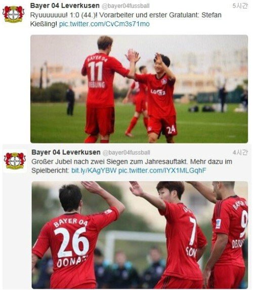 이에 레버쿠젠 공식 트위터에는 경기 직후 ‘RYUUUUUUU!’라는 감탄의 표현과 함께 골을 넣고 하이파이브를 하는 류승우의 사진이 게재됐다. 류승우의 첫 골에 대한 축하와 앞으로의 활약에 대한 기대감을 엿볼 수 있는 대목이다.