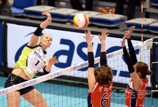 8일 대전 충무체육관에서 열린 NH농협 2013∼2014 V리그 여자부 경기. 이전까지 7승8패(승점24)로 3위를 달린 KGC인삼공사와 꼴찌 현대건설(4승10패·승점13)은 모두 최근 2연패를 기록 중이었다. 양 팀 모두 반전이 절실했다. 무조건 승리가 필요했다. 비슷한 팀 상황에 경기 흐름도 비슷했다. 4세트까지 2-2로 팽팽했다. 첫 세트를 인삼공사가 따자 2세트 들어 현대건설이 힘을 냈다.