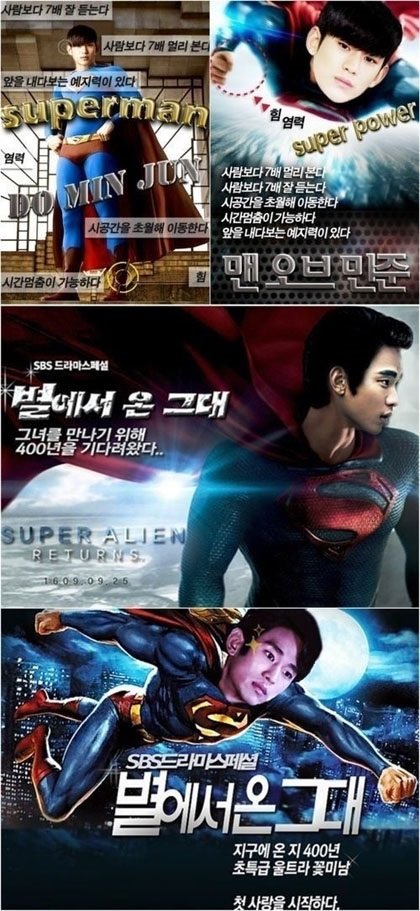 SBS 드라마‘별에서 온 그대’홈페이지에서 진행중인 'UCC 포스터 콘테스트'에는 다양한 김수현의 슈퍼맨 패러디물이 올라왔다.