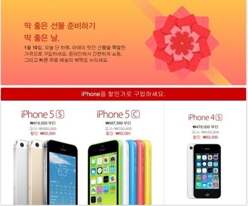 애플스토어에서 아이폰5S는 6만2000 원이 할인된 81만8000 원부터, 아이패드 에어는 4만6000 원이 할인된 57만4000 원부터 구입할 수 있다.