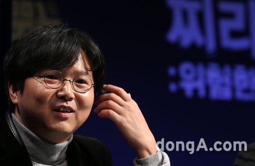 김광식 감독이 13일 오전 서울 강남구 압구정CGV에서 열린 영화 '찌라시:위험한 소문' 제작보고회에 참석해 밝은 표정을 짓고 있다.