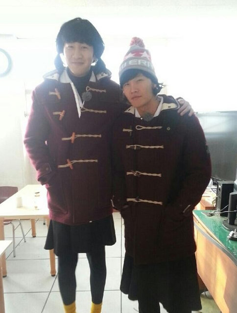공개된 사진에서 이광수는 김종국과 함께 여고생으로 변신해 눈길을 끌었다.